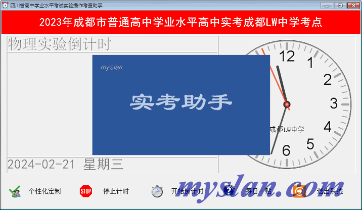 (四川省普通高中学业水平考试实验操作考查)实考助手,提供倒计时、挂钟、考试指令和座次安排等功能,欢迎个性化定制。